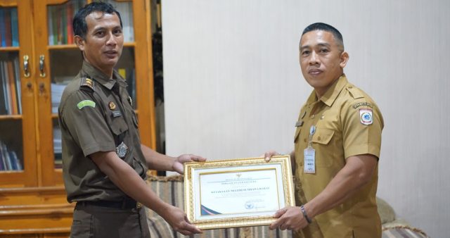 Penyerahan piagam penghargaan tersebut, diberikan langsung oleh Plh Inspektorat KSB Mars Anugerainsyah, M.Si, Selasa (10/5/2022).
