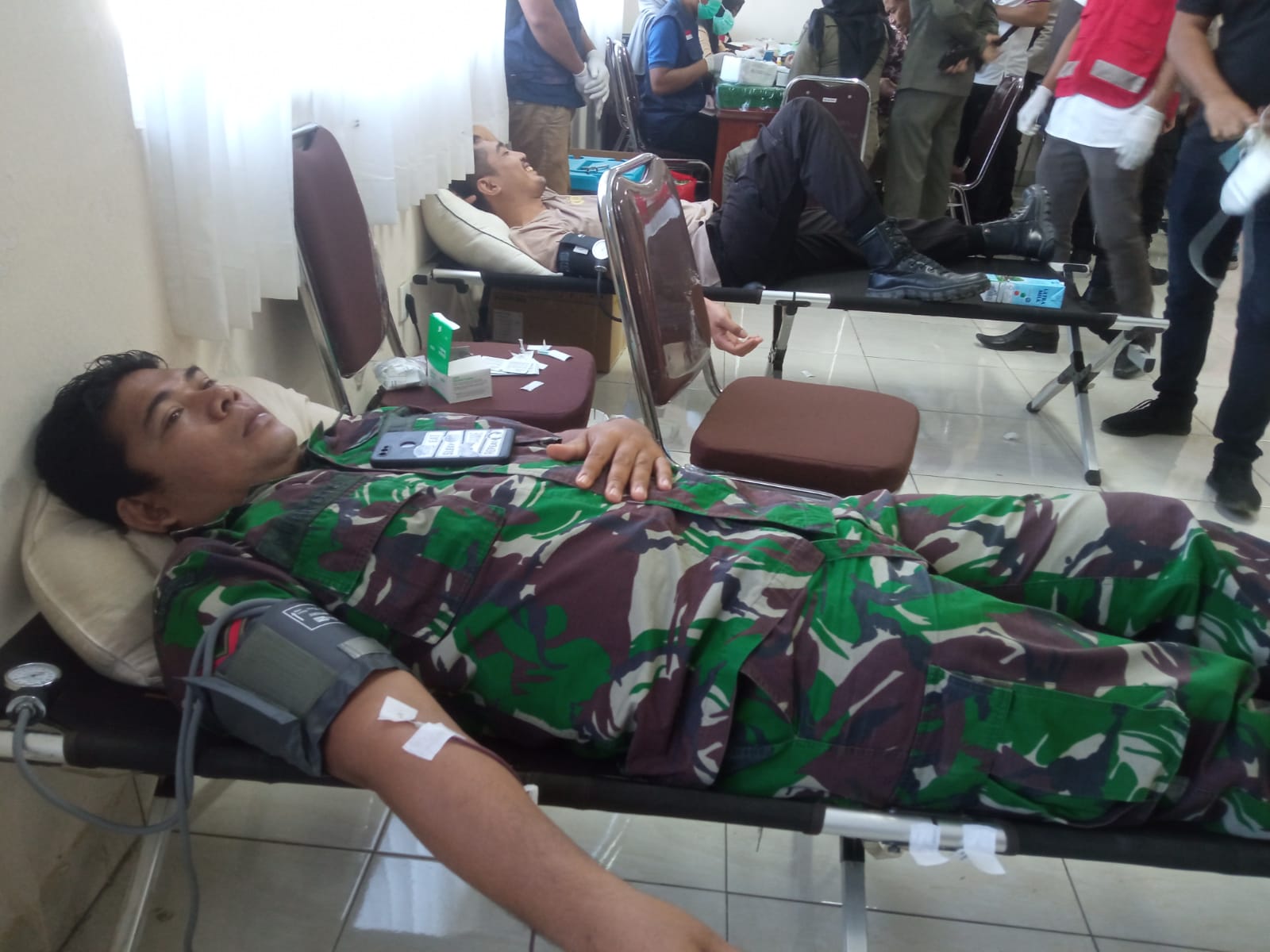 Anggota Kodim 1628/SB Ikuti Donor Darah Dalam Rangka HUT Ke 76 Polri