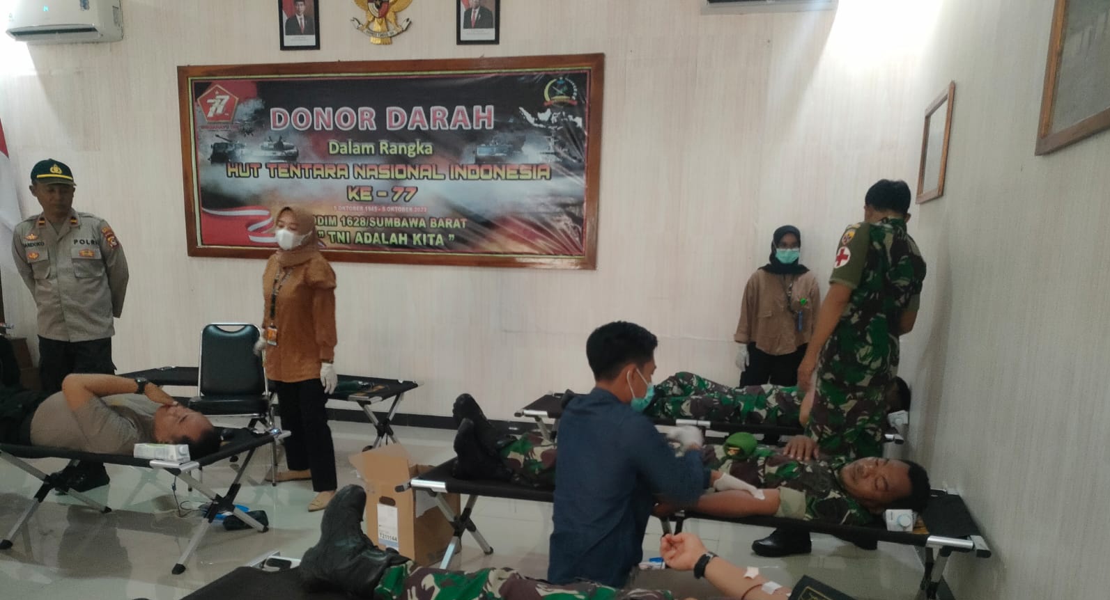 Adapun peserta pendonor darah antara lain personel TNI jajaran Kodim 1628/SB, Personil Polri dari Polres Sumbawa Barat, Anggota Kompi Brimob, personel Satpol PP dan Persit KCK XLIV Cabang Kodim 1628.(HNTB)