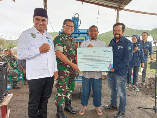 Sinergi Bhakti TNI dan PLTU Tambora Serahkan Bantuan Alat Pembuatan Batako