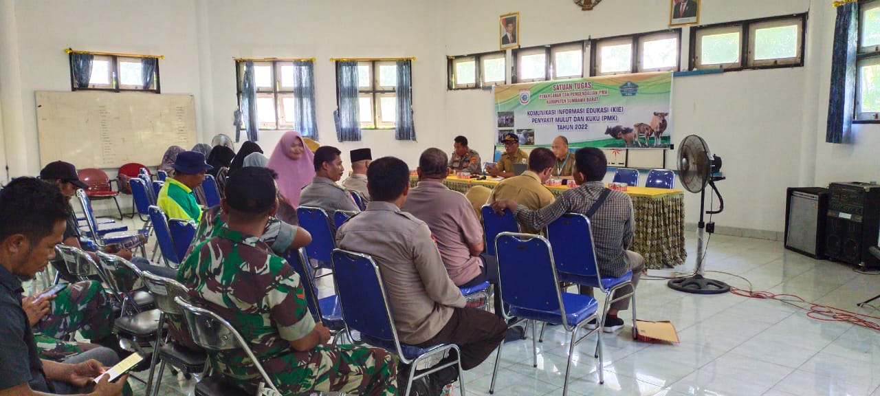 Harian NTB, Sumbawa Barat | Dalam rangka mengatasi serta mengantisipasi meluasnya wabah Penyakit Mulut dan Kuku (PMK) pada hewan ternak di Kabupaten Sumbawa Barat, Satuan Tugas Penanganan dan Pengendalian PMK Kabupaten Sumbawa Barat melaksanakan komunikasi, informasi dan edukasi terkait PMK di Kantor Camat Jereweh Kabupaten Sumbawa Barat, Selasa (13/12/2022).