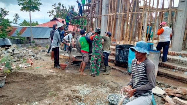 Babinsa Kokarlian Bersama Masyarakat Gotong Royong Mengecor Masjid