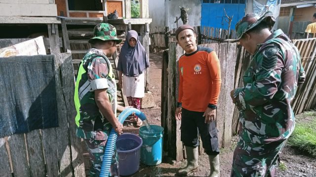 Terkait hal tersebut Danramil menjelaskan bahwa personil TNI Polri bersama OPD terkait Pemda bersinergi dalam memberikan penanganan awal baik saat terjadinya banjir maupun pasca banjir.