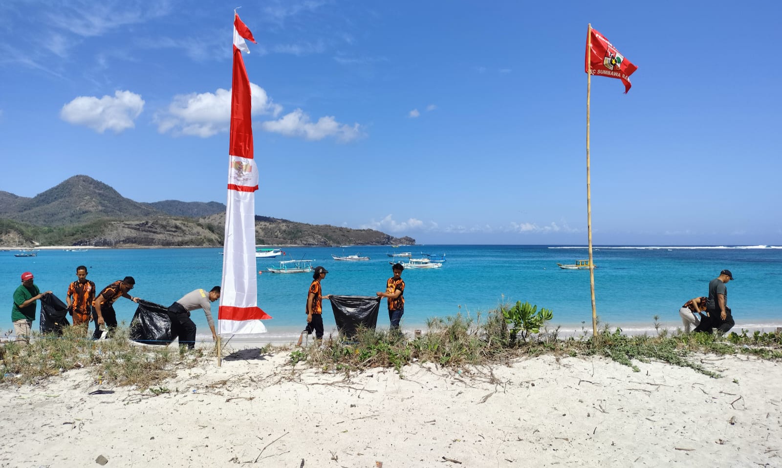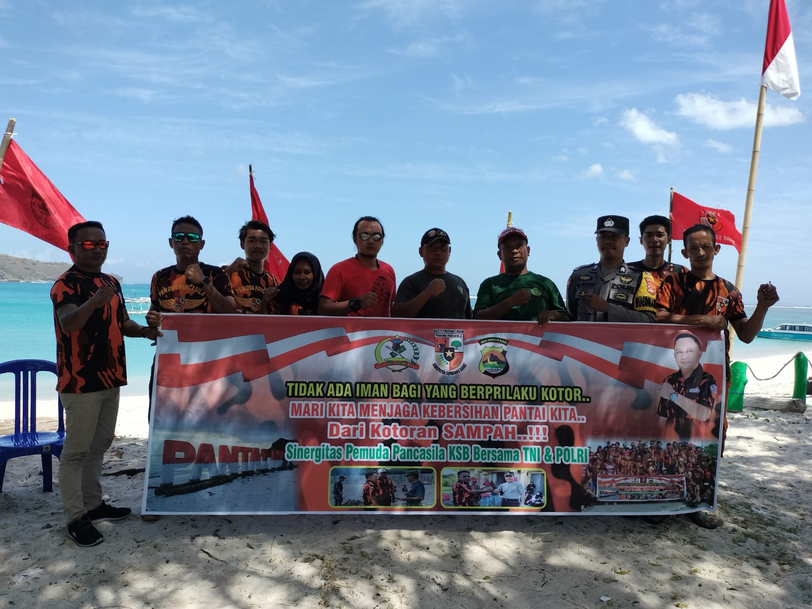 Sumbawa Barat | Majelis Pimpinan Cabang Pemuda Pancasila Kabupaten Sumbawa Barat bersama TNI Polri dan Pemerintah Desa Pasir Putih menggelar aksi Clean Up pantai Pasir Putih, Kecamatan Maluk, Jum’at (28/7/2023).
