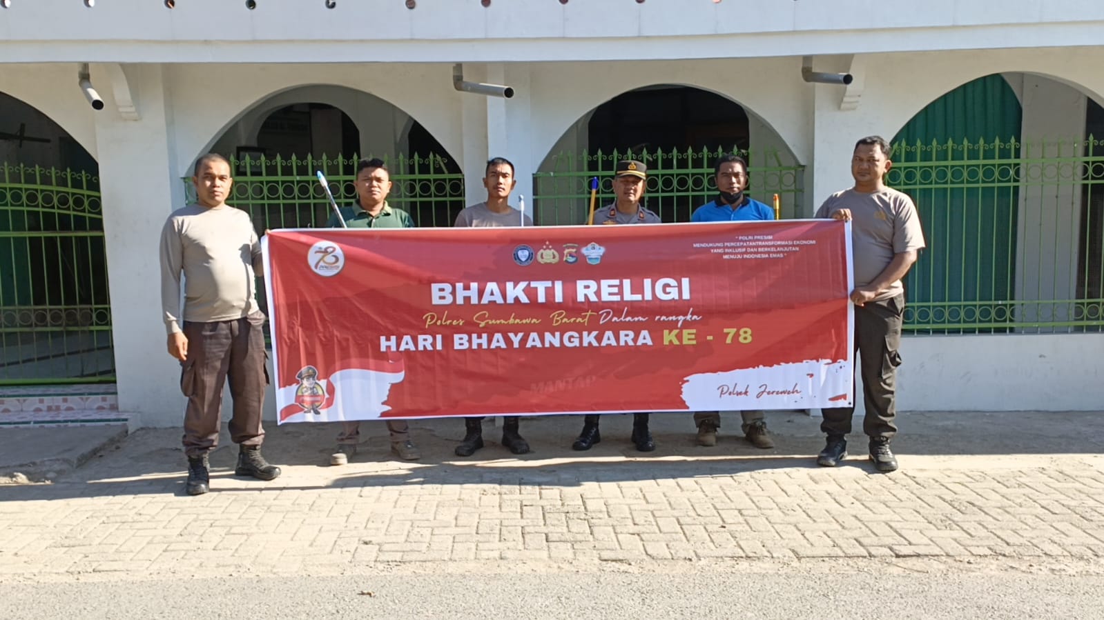 Harian NTB, Sumbawa Barat | Jelang HUT Bhayangkara ke-78 yang jatuh pada 1 Juli 2022, dengan tema “Polri Presisi mendukung percepatan transformasi ekonomi inklusif dan berkelanjutan menuju indonesia emas” Polsek Jereweh bersama anggota melaksanakan kegiatan bakti sosial religi di Masjid Al-Furqan, Desa Beru, Kecamatan Jereweh, Rabu (12/06/2024).