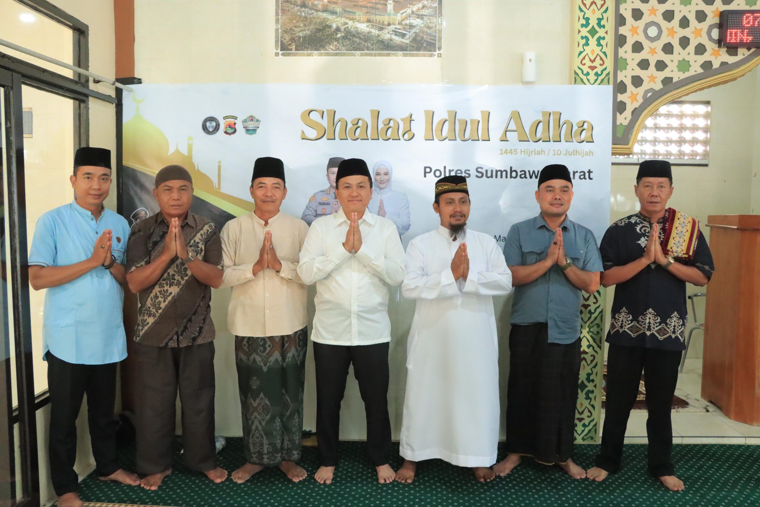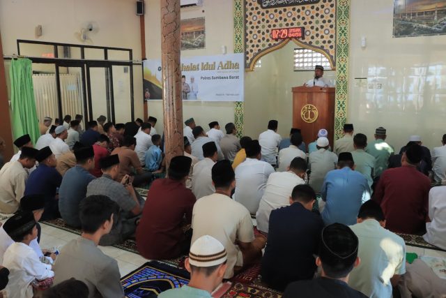 Kapolres Sumbawa Barat melalui Kasi Humas menjelaskan bahwa setiap tahun Polres Sumbawa Barat melaksanakan Sholat Id baik pada Idul Fitri maupun Idul Adha, bertempat di lapangan Polres atau di Masjud Ar – Rahmatullah yang ada di lingkungan Mapolres Sumbawa Barat, tergantung hasil musyawarah panitia dengan mempertimbangkan segala aspek untuk menentukan lokasi sholat Id dan saat ini tempatnya di Masjid.