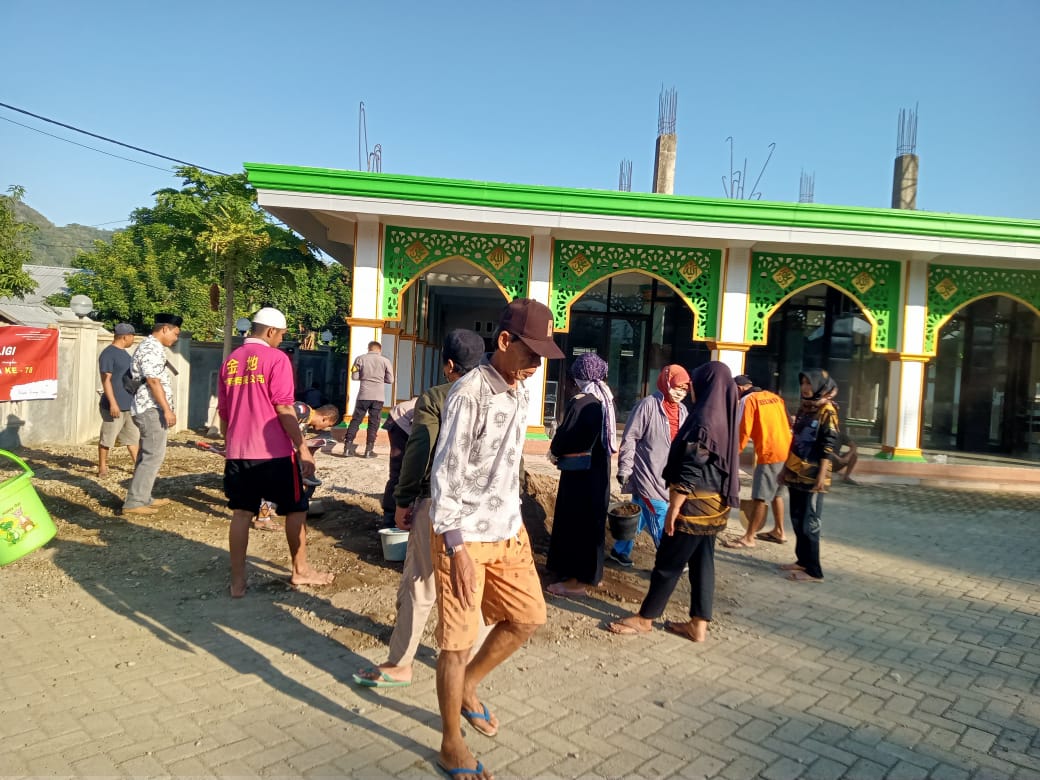 Harian NTB, Sumbawa Barat | Kapolsek Brang Rea IPTU Denny Prapto bersama anggota, PDPGR dan sejumlah masyarakat yang berada di wilayah Desa Tepas melaksanakan kegiatan Bhakti Sosial Religi gotong royong pembersihan di lokasi renovasi Masjid Jami’ Baitul Muslim.
