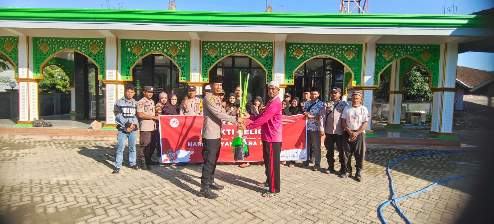 Dalam kesempatan tersebut, Kapolsek Brang Rea yang akrab di panggil Denny memberikan bantuan berupa sejumlah alat kebersihan untuk masjid serta sembako kepada pengurus masjid.