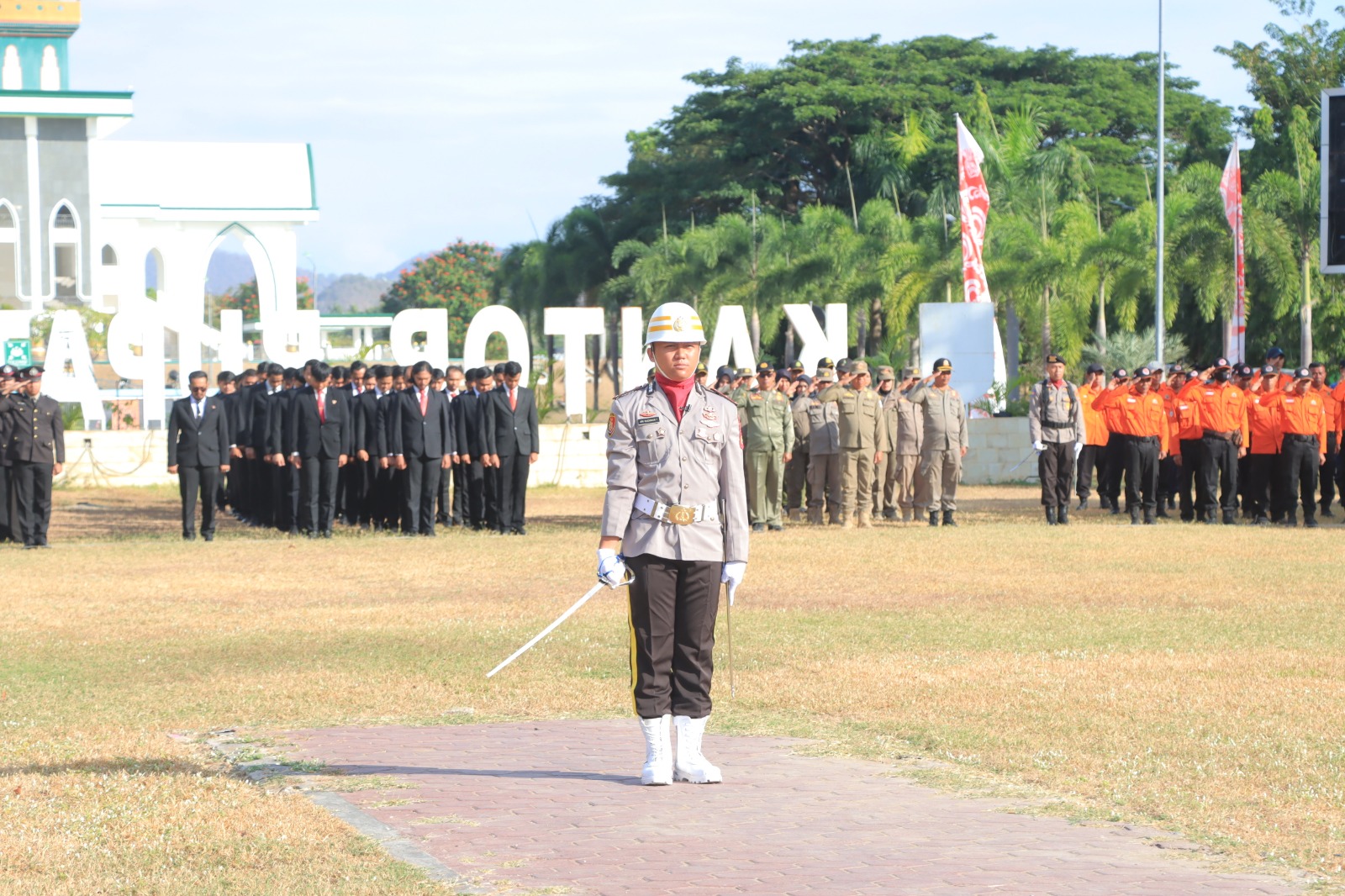 Tampak hadir Bupati Sumbawa Barat Dr. Ir.H.W Musyafirin M.M bersama istri, Ketua DPRD Kabupaten Sumbawa Barat Kaharuddin Umar , Wakil Ketua I dan II DPRD Kabupaten Sumbawa Barat, Dandim 1628/Sumbawa Barat Letkol Inf Andri Karsa S.Sos.,M.Han bersama Ketua Persit Kartika Candra kirana, Kapolres Sumbawa Barat AKBP Yasmara Harahap S.I.K didampingi Ketua Bhayangkari Cabang Sumbawa Barat, Kajari Sumbawa Barat yang di wakili oleh Kasi Pidum Anak Agung Putu Juniartana Putra SH, Kepala BNNK Sumbawa Barat Indah Poernomosari, S.E.,M.Ak, Waka Polres Sumbawa Barat Kompol Didik Haryanto S.H, Danki Brimob Yon B Sumbawa Barat AKP Nurdin, Para Perwira Staf dan Danramil Jajaran Kodim 1628/Sumbawa Barat, Pju Polres Sumbawa Barat, Ketua Pengadilan Agama Taliwang H.Ahmad Taufik S.Ag,Para Kepala SKPD dan OPD Pemda Sumbawa Barat, Ketua Senkom KSB Abdul Rozak, Spesialis External PT. AMNT Ismul Bahar, Para Camat Se-Kab. Sumbawa Barat, dan tamu undangan lainnya.